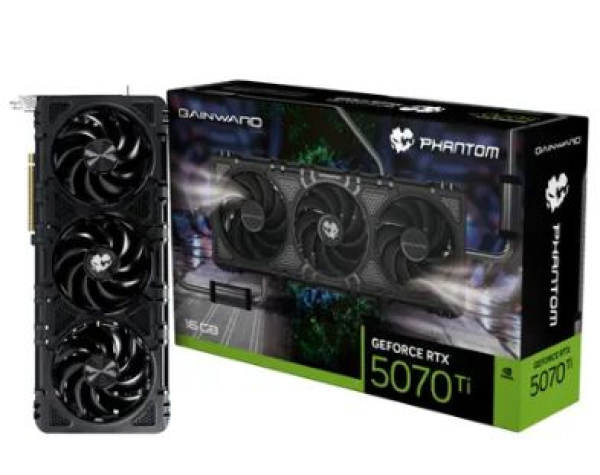 Die Gainward GeForce RTX 5070 Ti Phantom ist eine High-End-Grafikkarte mit der GeForce RTX 5070 Ti GPU von NVIDIA. Die leistungsfähigen GeForce RTX 50-Grafikkartenserie basiert auf der NVIDIA Blackwell Architektur und bietet neue Stufen von Gaming Realismus, Geschwindigkeit und Leistungseffizienz, AI Features wie Frame Generation, Multi Frame Generation und realistische VR-Erlebnisse. Weitere Features sind Real-Time Ray Tracing, Ray-Reconstruction, NVIDIA Ansel, mit umfangreichen Werkzeugen zur Erstellung von Screenshots in Spielen sowie NVIDIA G-SYNC, G-SYNC HDR, NVIDIA DLSS 4, ShadowPlay, Highlights, NVENC Gen 9, AV1 Encoder und Decoder. Die auf der Gainward GeForce RTX 5070 Ti Phantom verbaute GPU verfügt über 8960 CUDA Cores. Der 16 Gbyte große GDDR7-Speicher verfügt über einen 256-Bit-Speicherkontroller.