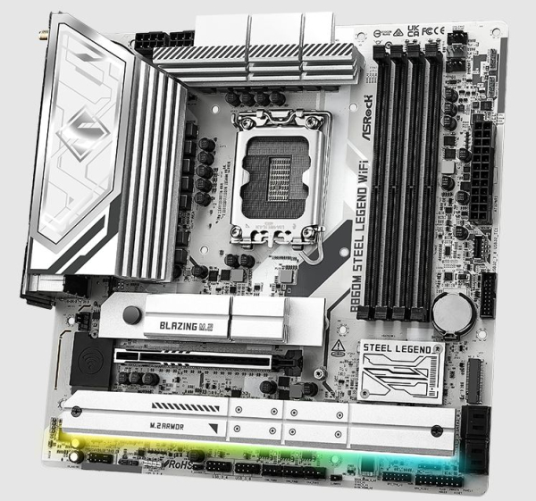 Das ASRock B860 Steel Legend WiFi basiert auf dem Intel®-B860-Chipsatz und unterstützt Intel®-Prozessoren für den Sockel 1851. Es verfügt über vier DDR5-Slots für bis zu 256 GB Arbeitsspeicher. Zur weiteren Ausstattung des ASRock B860 Steel Legend WiFi gehören ein PCIe-5.0-x16-Slot und ein PCIe-4.0-x16-Slot (x2 Lanes). Außerdem verfügt das ASRock B860 Steel Legend WiFi über 8-Kanal-Sound, eine 2.5 Gigabit-LAN-Schnittstelle, WiFi 6E, Bluetooth 5.3, vier SATA3-Anschlüsse, vier M.2-Anschlüsse und eine Reihe an USB-Schnittstellen.