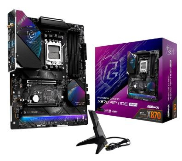 Das ASRock X870 Riptide WiFi basiert auf dem AMD-X870-Chipsatz und unterstützt AMD-Prozessoren für den Sockel AM5. Es verfügt über vier DDR5-Slots für bis zu 256 GB Arbeitsspeicher. Zur weiteren Ausstattung des ASRock X870 Riptide WiFi gehören ein PCIe-5.0-x16-Slot und ein PCIe-4.0-x16-Slot (x4 Lanes). Außerdem verfügt das ASRock X870 Riptide WiFi über 8-Kanal-Sound, eine 2.5 Gigabit-LAN-Schnittstelle, WiFi 7, Bluetooth 5.4, vier SATA3-Anschlüsse, drei M.2-Anschlüsse und eine Reihe an USB Schnittstellen.