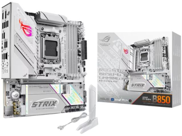 Das ASUS ROG STRIX B850-G GAMING WIFI basiert auf dem AMD B850 Chipsatz und unterstützt AMD-Prozessoren für den Sockel AM5. Es verfügt über vier DDR5-Slots für bis zu 256 GB Arbeitsspeicher. Zur weiteren Ausstattung des ASUS ROG STRIX B850-G GAMING WIFI gehören ein PCIe-5.0-x16-Slot und ein PCIe-4.0-x16-Slot. Außerdem verfügt das ASUS ROG STRIX B850-G GAMING WIFI über 8-Kanal-Sound, eine 2,5 Gigabit-LAN-Schnittstelle, WiFi 7, Bluetooth 5.4, zwei SATA3-Anschlüsse, vier M.2-Anschlüsse und eine Reihe an USB-Schnittstellen.
