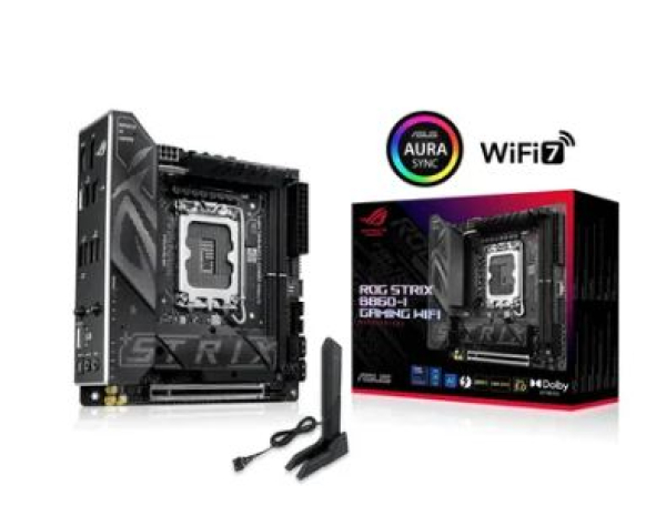 Das ASUS ROG STRIX B860-I GAMING WIFI basiert auf dem Intel®-B860-Chipsatz und unterstützt Intel®-Prozessoren für den Sockel 1851. Es verfügt über zwei DDR5-Slots für bis zu 96 GB Arbeitsspeicher. Zur weiteren Ausstattung des ASUS ROG STRIX B860-I GAMING WIFIgehört ein PCIe-5.0-x16-Slot. Außerdem verfügt das ASUS ROG STRIX B860-I GAMING WIFI über 8-Kanal-Sound, eine 2.5 Gigabit-LAN-Schnittstelle, WiFi 7, Bluetooth 5.4, vier SATA3-Anschlüsse, zwei M.2-Anschlüsse und eine Reihe an USB-Schnittstellen.