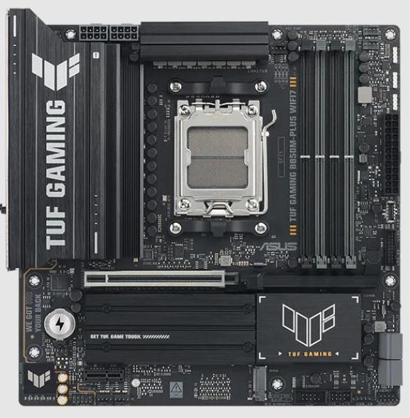 Das ASUS TUF GAMING B850M-PLUS WIFI7 basiert auf dem AMD B850 Chipsatz und unterstützt AMD-Prozessoren für den Sockel AM5. Es verfügt über vier DDR5-Slots für bis zu 256 GB Arbeitsspeicher. Zur weiteren Ausstattung des ASUS TUF GAMING B850M-PLUS WIFI7 gehören ein PCIe-5.0-x16-Slot und eine PCIe-4.0-x16. Außerdem verfügt das ASUS TUF GAMING B850M-PLUS WIFI7 über 8-Kanal-Sound, eine 2,5 Gigabit-LAN-Schnittstelle, WiFi 7, Bluetooth 5.4, vier SATA3-Anschlüsse, drei M.2-Anschlüsse und eine Reihe an USB-Schnittstellen.