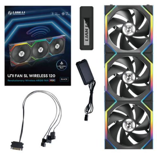 Lian Li UNI FAN SL Wireless ARGB PWM Lüfter - 3er-Pack inkl. Controller - 120 mm, schwarz