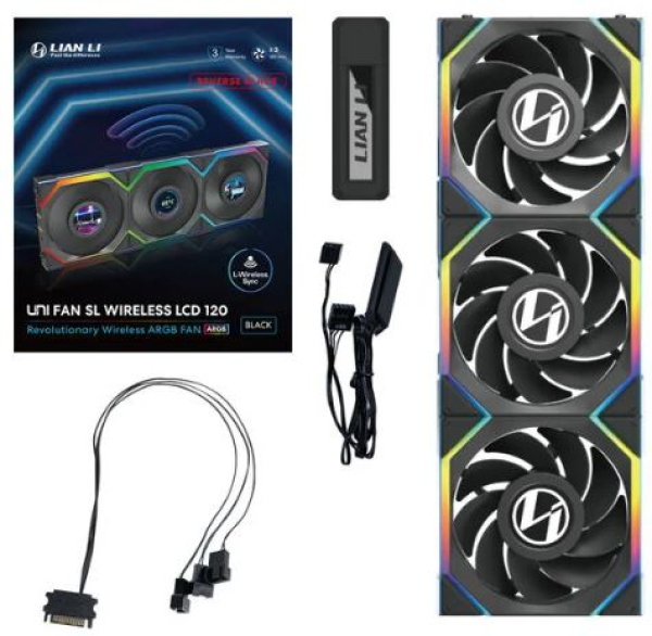 Lian Li UNI FAN SL Wireless LCD Lüfter - ARGB, PWM, 3er-Pack inkl. Controller - Reverse Blade, 120 mm, schwarz