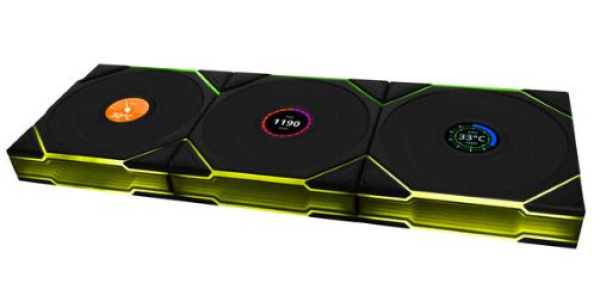 Lian Li UNI FAN TL Wireless LCD Lüfter, ARGB, PWM, 3er-Pack inkl. Controller - 120 mm, schwarz