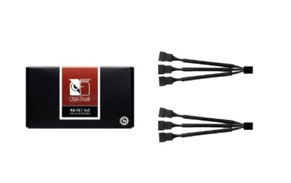 Das Set NA-SC1 Sx2 von Noctua enthält zwei NA-SC1 3-Wege-Verteilerkabel, mit denen drei Lüfter gleichzeitig von einem Lüfteranschluss mit Strom versorgt und gesteuert werden können. Wenn die Verteilerkabel hintereinander angeschlossen werden, können insgesamt fünf Lüfter auf einmal betrieben und gesteuert werden. Die NA-SC1 3-Wege-Verteilerkabel leiten das PWM-Signal zur Drehzahlsteuerung vom Eingangsstecker zu allen drei Ausgangsbuchsen. Zusätzlich senden die NA-SC1 Kabel das RPM-Signal des ersten Lüfters zurück an den Lüfteranschluss, sodass PC-Mainboards und andere Lüftersteuerungen die Umdrehungszahl auslesen können. Die 4-Pin Anschlüsse der Kabel sind durch eine Kerbe gegen Falschausrichtung gesichert und mit 4-Pin und 3-Pin Lüftern kompatibel. Während 4-Pin Lüfter mit PWM gesteuert werden können, kann die Umdrehungszahl von 3-Pin Lüftern durch Spannungsreduktion geregelt werden. Die NA-SC1 Kabel sind von Noctuas charakteristischer Ummantelung aus gewobener, mit Silikon überzogener Glasfaser gegen mechanische Abnutzung sowie gegen Hitze und Flammen (bis zu 200°C, UL 1441 zertifiziert), geschützt. Damit eignen sich die NA-SC1 nicht nur ideal für den Gebrauch in PCs, sondern auch für andere Heimanwendungen und die Anwendung in kritischen und rauen Industrieumgebungen. Die Kabel sind mit allen aktuellen Noctua 5V, 12V und 24V Lüftern sowie vielen Lüftern anderer Anbieter kompatibel. Dank der kodierten Stecker können Lüfter nur in der korrekten Position angeschlossen werden.