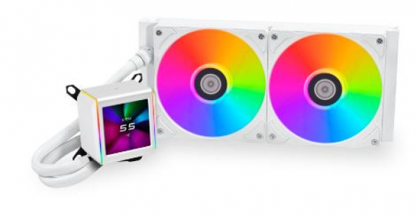 All-In-One-Wasserkühlung in Weiss, 280-mm-Radiator, Pumpendeckel mit konfigurierbarem IPS-Display, leistungsstarke Asetek-PWM-Pumpe, zwei 140-mm-ARGB