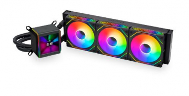 All-In-One-Wasserkühlung in Schwarz, 360-mm-Radiator, Pumpendeckel mit konfigurierbarem IPS-Display, leistungsstarke Asetek-PWM-Pumpe, drei SL-INF 12