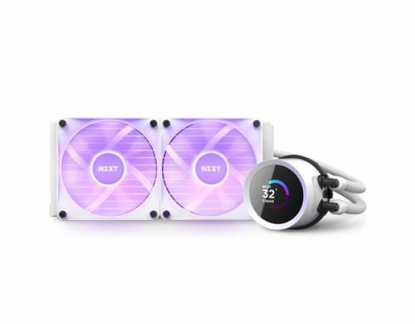 Die NZXT Kraken 240 RGB ist eine Wasserkühlung mit LCD-Anzeige und RGB-Lüftern. Sie bietet eine kühle Leistung, eine einfache Installation und eine Anzeige für Systemdaten oder eigene Bilder. Das LCD-Display mit 3,91 cm (1,54") Durchmesser liefert ein sauberes Bild. Die leuchtenden, leisen RGB-Core-Lüfter der F-Serie verleihen dem Gaming-Setup dank der 8 individuell adressierbaren RGB-LEDs an jedem Lüfter eine lebhafte Anmutung. Die Asetek-Pumpe der 7. Generation sorgt dafür, dass der Kraken mit 2800 Umdrehungen pro Minute kühl bleibt und ruhig läuft. Die Montage wird durch ein einziges Breakout-Kabel vereinfacht, das bei der Installation wenig Möglichkeiten für Fehler lässt. Die Flüssigkeitsschläuche sind mit verstärktem Nylon-Geflecht geschützt, das zusätzliche Haltbarkeit und eine sorgenfreie Handhabung bietet.