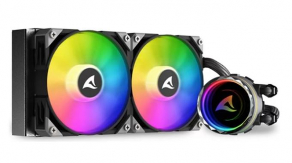 Die S80 RGB ist eine kompakte All-in-One-Wasserkühlung, die mit einem 240-Millimeter-Radiator eine effiziente Kühlung für CPUs liefert. Die adressierbaren RGB-PWM-Lüfter sorgen neben optischen Highlights in 16,7 Millionen Farben auch für eine gute Kühlleistung mit bis zu 2.000 Umdrehungen pro Minute. Durch flexible, textilummantelte Schläuche und mitgelieferte Montagehalterungen gestaltet sich auch der Einbau spielend einfach. Die beiden zum 240-Millimeter-Radiator gehörenden RGB-PWM-Lüfter der S80 RGB sind nicht nur in ihrer Beleuchtung vollständig adressierbar, sondern können auch in einem Drehzahlbereich von 600 bis 2.000 Umdrehungen pro Minute individuell geregelt werden. Zudem lassen sich die Lüfter für ein einfaches Kabelmanagement mittels "Daisy Chain" in Reihe schalten. Auch die Pumpe verfügt über eine PWM-Steuerung für optimale Performance und geringe Lautstärke. Wie die Lüfter ist auch der CPU-Kühler mit einer RGB-Beleuchtung ausgestattet und wartet zusätzlich einem schicken Infinity-Spiegel-Effekt auf. Eine Kupferplatte, sowie die mitgelieferte, hochwertige DOWSIL™-Wärmeleitpaste sorgen dabei für eine bestmögliche Wärmeableitung. Dank zweier beiliegender Montagehalterungen für die CPUs aller Hersteller ist die All-in-One-Wasserkühlungslösung optimal für den direkten Einsatz im Gehäuse vorbereitet. Der Einbau im Gehäuse gestaltet sich mittels flexibler Schläuche so unkompliziert wie möglich. Die Schläuche sind zudem textilummantelt, um optimal vor Kratzern geschützt zu sein. Um jederzeit eine horizontale Ausrichtung des Sharkoon-Logos zu ermöglichen, lässt es sich jederzeit bequem auf dem CPU-Kühler in die gewünschte Position drehen.