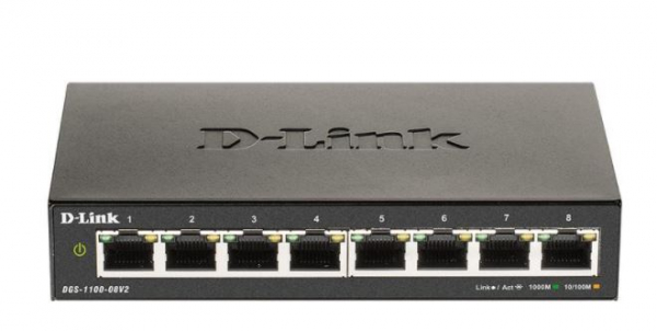 Der DGS-1100-08 Switch gehört zur DGS-1100 Serie von D-Link. Die EasySmart Switches der DGS-1100 Serie von D-Link sind eine preisgünstige Lösung für Heim- und Kleinbüros, kleine und mittlere Unternehmen sowie Großunternehmen, die in Zweigstellen oder Konferenzräumen eine unkomplizierte Netzwerkanbindung benötigen. Die Modelle verfügen über ein kompaktes Metallgehäuse in Tischgröße und 8, 16 bzw. 24 Gigabit Ethernet-Anschlüsse. Die Switches erfüllen den IEEE-Standard 802.3az für energieeffizientes Ethernet (EEE) und senken bei niedriger Auslastung der Anschlüsse ihren Stromverbrauch. Die EasySmart Switches der DGS-1100 Series verfügen über eine Weboberfläche und unterstützen das Dienstprogramm SmartConsole. Das Dienstprogramm SmartConsole erkennt automatisch alle Smart Switches von D-Link in einem Layer-2-Netzwerksegment.
