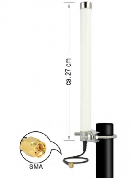DeLock 12433 - LTE Antenne SMA Stecker 2 - 6,5 dBi 27 cm omnidirektional starr Mastmontage Weiss outdoor