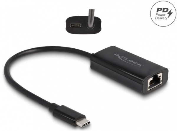 DeLock 61026 - USB Type-C Adapter zu Gigabit LAN mit Power Delivery 100 Watt