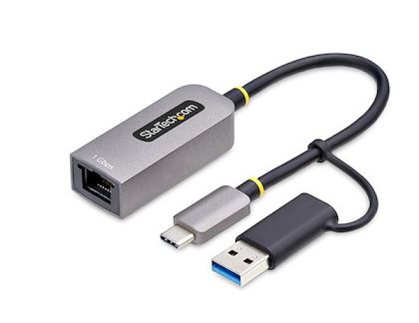 Startech C21GA-USB-ETHERNET - USB-C Ethernet Adapter mit USB-A Dongle, Gigabit, 15cm Kabel, USB 3.0 Gigabit Adapter
