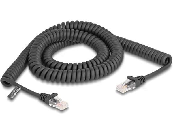 Delock Patchkabel Spiralkabel Cat 5e, UTP, 3 m, Schwarz / Stecker zu Stecker, 3m, schwarz / Thema: Patchkabel