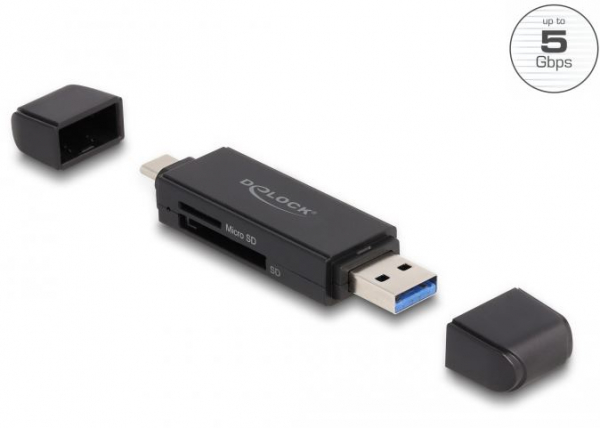 DeLock 91004 - Card Reader SuperSpeed USB 5 Gbps USB Type-C / Typ-A für SD und Micro SD Speicherkarten