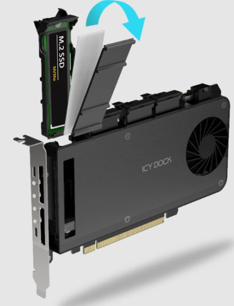 Wir stellen die innovative 4 x M.2 NVMe PCIe 5.0 x4 SSD-Wechselrahmen-/Adapterkarte ExpressSlot Slide MB204MP-B vor, die für den PCIe 4.0/5.0 x16 Erweiterungsslot entwickelt wurde. Erzielen Sie bemerkenswerte Datenübertragungsgeschwindigkeiten von bis zu 128 Gbps pro Laufwerk in einem einzigen PCIe-Steckplatz. Durch die Verwendung von Motherboards mit PCIe Bifurcation-Fähigkeit (x4, x4, x4, x4 für einen 16x-Slot) ermöglicht das MB204MP-B den Anwendern das schnelle Hinzufügen oder Entfernen von vier unabhängigen M.2 NVMe SSDs über einen einzigen PCIe x16-Slot. Dieses Produkt ist das erste Wechselrahmen-Gehäuse, das ein einfaches Hinzufügen und Entfernen von 4 M.2 NVMe-SSDs direkt über eine PCIe-Adapterkarte ermöglicht. Das MB204MP-B ist ideal für Umgebungen, in denen M.2 NVMe-SSDs mit hoher Packungsdichte auf begrenztem Raum installiert werden müssen, und gewährleistet eine schnelle Wartung, Aufrüstung und einen schnellen Austausch von Laufwerken. Dies macht es perfekt für Anwendungen wie Rechenzentren, High-Performance-Computing und Enterprise-Storage-Lösungen, bei denen Platzersparnis und einfacher Zugriff entscheidend sind.