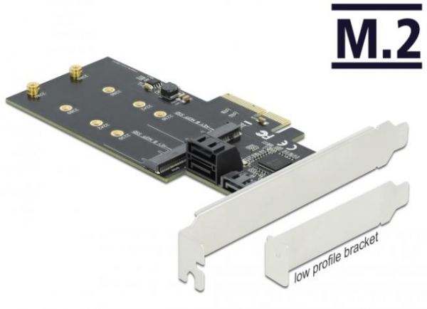 Delock 90499 - 3 Port SATA und 2 Slot M.2 Key B PCI Express x4 Karte - Low Profile Formfaktor