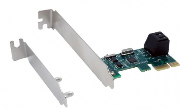 Die EX-3519 PCIe Karte mit dem Baustein ASM1061 ist eine 2-Kanal Erweite-rungskarte. Jeder Serial ATA Port unterstützt Übertragungsgeschwindigkeiten von bis zu 6Gbps und ist abwärtskompatibel zu älteren SATA 1.5Gbps oder 3Gbps Laufwerken. Ausserdem unterstützt die Karte mit dem Mode Umschalter die Funktion zwischen IDE oder ACHI System. Die EX-3519 wird häufig in Ser- ver, Personal Computern, ürocomputern usw. eingesetzt. Mit dem Controller wird ein Low Profile Bügel für schmale Gehäuse bis 8cm Bauhöhe itgeliefert.