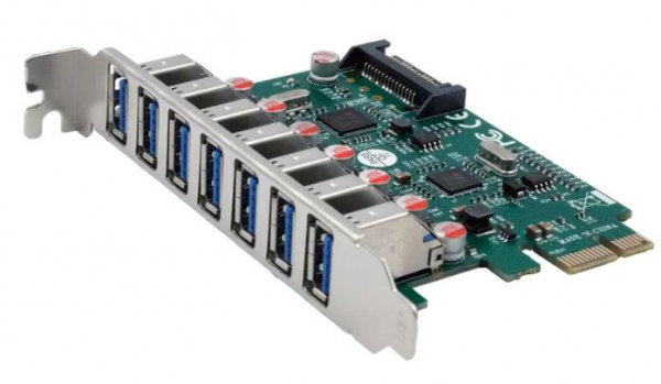 Die EX-11088-2 USB 3.2 Gen 1 PCIe Karte stellt sieben Externe Super-Speed USB 3.2 Gen 1 Ports zur Verfügung. Entwickelt wurde sie um mehrere USB 1.1, 2.0 oder 3.2 Gen 1 Endgeräte an Ihre Workstation, Desktop oder Server anzuschliessen. Sie unterstützt USB 1.1 Low-Speed (1.5Mbps), Full-Speed (12Mpbs), USB 2.0 High-Speed (480Mbps) und USB 3.2 Gen 1 Super-Speed (5Gbps). Sie ist die perfekte Technologie für Externe Speicher Gehäuse, Digitale Kameras, Webcam, Scanner und mehr. Die Karte benötigt den Stromanschluss vom PCNetzteil für einwandfreie Funktion und um die 900mA auf den USB Ports zur Verfügung stellen zu können.