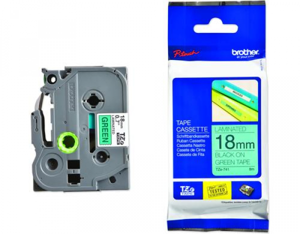 Brother TZe-741, Schriftband 18 mm, Schwarz auf Grün