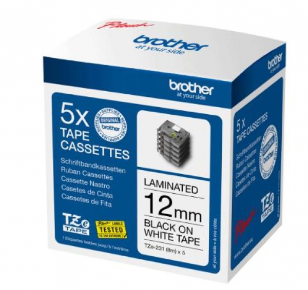 Brother Beschriftungsband TZe-231 Schwarz auf Weiss, 5 Stück