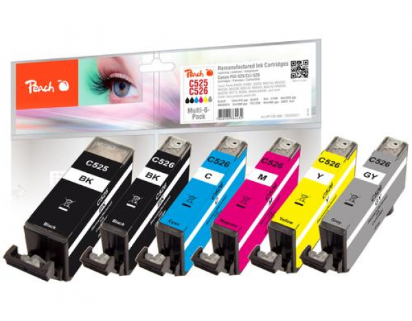 Peach Tinte PGI-525/CLI-526 Multi-6-Pack C, M, Y, BK / 1x19, 5x9 ml,410, 520, 600, 490 S. / Thema: Tinte