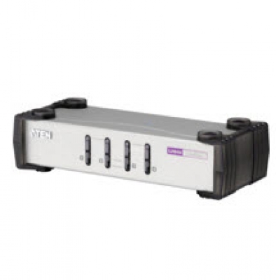 KVM-Switch mit 4 Ports für USB- und PS/2-Eingabegeräte und VGA-Grafik (KVM-Kabel im Lieferumfang enthalten)Der PS/2-USB-KVM-Switch CS84U ist ein Gerät zur Schreibtischinstallation, das es ermöglicht, vier Computer von einer einzigen KVM-Konsole (PS/2- oder USB-Tastatur und -Maus sowie VGA-Monitor) zu steuern. Zusätzlich unterstützt der CS84U die neue Video DynaSync™-Technologie von ATEN, die Anzeigeprobleme beim Einschalten von Geräten verhindert und die Auflösung optimiert. Die Installation ist kinderleicht: Sie müssen nur die Kabel an die entsprechenden Ports anschließen. Sie müssen keine Software installieren, keine Installationsroutinen einrichten und können somit Kompatibilitätsprobleme von vorne herein vergessen. Da der CS84U die Tastatureingaben direkt umsetzt, kann er für die verschiedensten Computerplattformen eingesetzt werden. Eigenschaften
