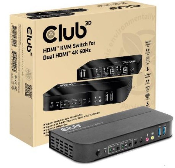 Club3D CSV-1382 - Dual-Port KVM-Switch mit 4K-Video