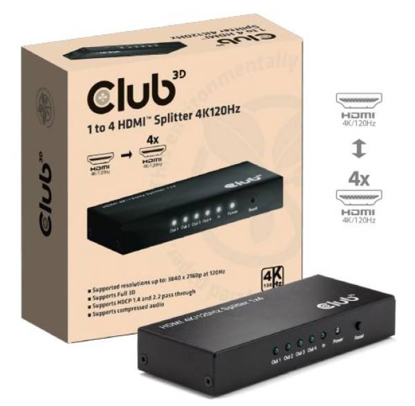 Club3D CSV-1385 - HDMI Splitter - 1 Eingang -> 4 Ausgänge 4K120Hz UHD