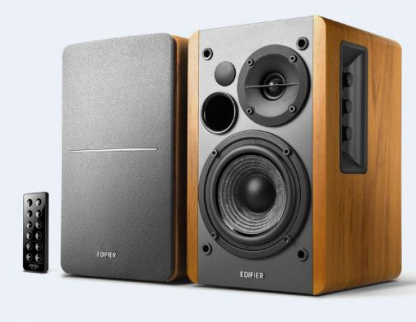 Knackiger Sound und zeitloses Design – das Edifier R1280DB begeistert mit seinen Klangeigenschaften und ist dank dualer Stereoeingänge, seinem optischen und koaxialen Eingängen sowie Bluetooth vielseitig einsetzbar. Das kompakte Regallautsprecher-System aus der Edifier Studio-Serie erzeugt mit seinen 42 Watt RMS Ausgangsleistung eindrucksvolle und räumliche Klangergebnisse. Die Lautsprecher verfügen über frontseitige Bassreflexkanäle, die für druckvolle und präzise Bässe sorgen. Das Soundsystem kann aufgrund des integrierten Verstärkers direkt mit allen Stereoquellen, wie beispielsweise TV oder PC, verbunden werden. Über Bluetooth kann Musik direkt vom iPhone oder Android-Smartphone oder iPad / Tablet abgespielt werden. Die Lautsprecher sind in Echtholzgehäusen untergebracht, was zu den exzellenten Klangeigenschaften des 2.0-Systems beiträgt. Seitlich am aktiven Lautsprecher befinden sich die Bedienelemente. Über drei Drehregler können Bassintensität, Höhen und die Lautstärke präzise auf das gewünschte Niveau eingestellt werden. Darüber hinaus lässt sich über die elegante Infrarot-Fernbedienung bequem aus der Ferne die Lautstärke einstellen, das System stummschalten, das Bluetooth ein- oder ausschalten sowie die Audioquelle wählen.