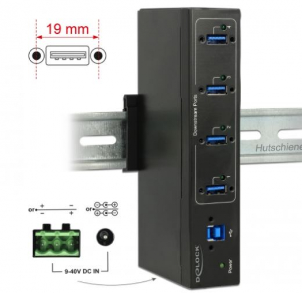 DeLock 63309 - Externer Industrie Hub 4 x USB 3.0 Typ-A mit 15 kV ESD Schutz
