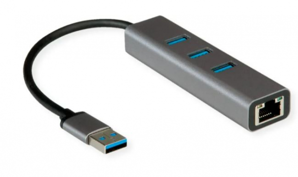 Roline USB 3.2 Gen 1 zu Gigabit Ethernet Konverter + Hub 3x