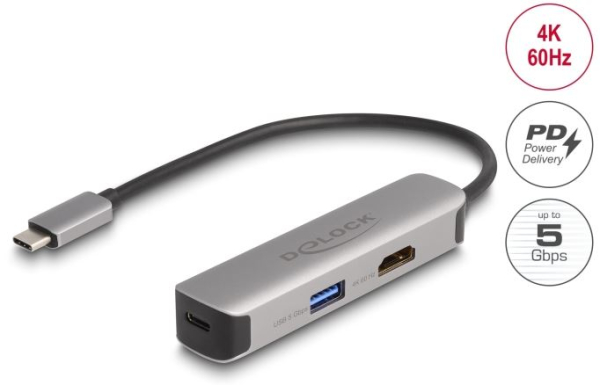 DeLock 61060 - USB Type-C Adapter zu HDMI 4K 60 Hz mit USB Typ-A und USB Type-C Daten + PD 92 W