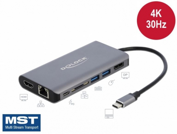 DeLock 87683 - USB Type-C Dockingstation 4K - HDMI / DP / USB 3.0 / SD / LAN / PD 3.0