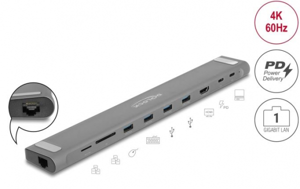 DeLock 87895 - USB Type-C Slim Dockingstation 4K - HDMI / USB 3.2 Gen 1 / LAN / SD / PD 3.0