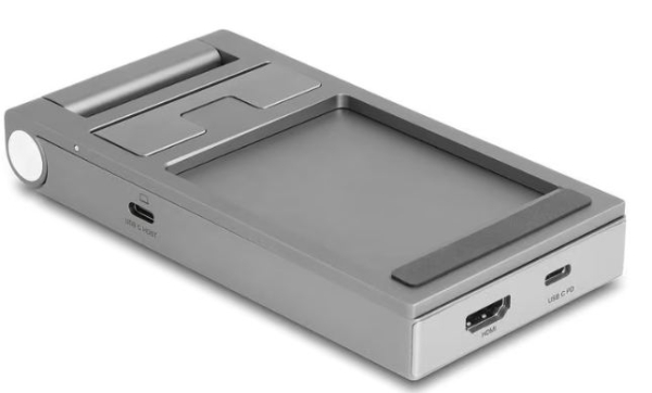 Diese Dockingstation für Tablets und Notebooks mit Halterung von Delock überzeugt nicht nur durch ihr Design, sondern auch durch Stabilität und Funktion. Die auf der Unterseite und in der Halterung befestigten Gummipads sorgen dafür, dass weder das Gerät noch die Halterung rutscht. Ideal auch bei längeren Videotelefonaten oder Serienmarathons Durch die Aussparung in der Halterung kann das Tablet auch geladen werden, während es hochkant steht. Somit ist die Halterung gerade bei langen Facetime oder Skype Videotelefonaten, sowie einem Serienmarathon bestens geeignet. Dockingstation Die Dockingstation kann an ein Mobilgerät mit USB-C DP Alt Mode oder Thunderbolt 3 Port angeschlossen werden und stellt eine Vielzahl von Schnittstellen zur Verfügung. An dem HDMI Ausgang kann ein Monitor mit einer maximalen Auflösung bis zu 4K 60 Hz betrieben werden. Integrierte USB Ports ermöglichen die Verwendung von Peripheriegeräten und Anschlüsse für ein Headset und ein SD bzw. Micro SD Kartenslot vervollständigen die Ausstattung. USB Power Delivery (USB PD 3.0) Unterstützung bis zu 60 Watt Die Dockingstation verfügt über einen USB Type-C Power Delivery Port. Wird dieser Port mit dem Netzteil des Notebooks oder Tablets verbunden, wird das Host Gerät während des Betriebs mit bis zu 60 Watt aufgeladen. Hinweis Samsung DeX wird unterstützt