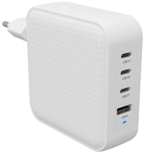 Das HyperJuice 100W USB-C GaN-Ladegerät kann mit seinen drei USB-C-Anschlüssen und einem USB-A-Anschluss bis zu 4 Geräte gleichzeitig mit Strom versorgen, sodass Sie Ihren Laptop, Ihr Telefon, tablet oder Ihre Kopfhörer schnell aufladen können. Dank seines kompakten Designs und der mitgelieferten Reiseadapter hat es alles, was Sie auf Reisen brauchen. Außerdem lässt es sich mit dem mitgelieferten C8-Adapter leicht in ein flexibles Tischladegerät umwandeln. Es ist die perfekte Lösung, um aufgeladen und verbunden zu bleiben, egal wo auf der Welt.