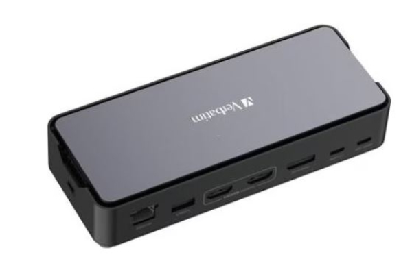 Diese umfassende Dockingstation von Verbatim verfügt über 15 Anschlüsse, darunter hochauflösende HDMI- und DisplayPort-Ausgänge, die für klare, scharfe 4K-Auflösung, mit bis zu drei Monitoren, sorgen. Mit USB-C Power Delivery (PD) lassen sich Geräte schnell aufladen, sodass angeschlossene Geräte stets mit Energie versorgt und betriebsbereit sind. Diese Dockingstation nutzt 3.2 Gen 2-Technologien um schnelle, unterbrechungsfreie Dateiübertragungen bereitzustellen nutzt Gigabit-Ethernet für eine stabile Verbindung. Sie verfügt außerdem über SD- und microSD-Kartenleser-Steckplätze zum direkten Lesen und Übertragen von Dateien. Eine Audiobuchse für Lautsprecher oder Headsets, um einen dynamischen Arbeitsbereich zu schaffen. Der integrierte SSD-Steckplatz bietet die Möglichkeit die Dockingstation um eine SSD zu erweitern.