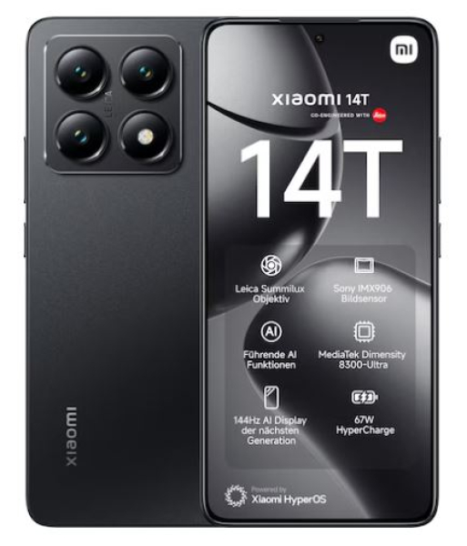 Hochwertiges Design und Eleganz: Das Xiaomi 14T kombiniert überzeugende Verarbeitung mit begeisternden Funktion. Dies gilt besonders für die Kamera: Die Kombination aus einem Leica Summilux Objektiv und einem IMX906 Bildsensor von Sony liefert begeisternde Ergebnisse - egal ob die Motive sich in der Nähe oder in der Ferne befinden oder ob sie schlecht oder gut ausgeleuchtet sind. So wird die Schönheit der Welt geradezu greifbar - auf einem 16,94 cm (6,67") großen AMOLED-Display mit einer maximalen Helligkeit von 4000 cd/m², einer Wiederholrate von 144 Hz und HDR-Unterstützung. Dabei stellt der MediaTek Dimensity 8300 Ultra Achtkern-Prozessor in Kombination mit einer MediaTek NPU 780 reichlich Rechenleistung zur Verfügung. Eine breite Palette von KI-Funktionen liefert Hilfe beim Schreiben, Brainstormen und vielem mehr. Alles wurde von Xiaomi in ein ultraflaches Gehäuse verpackt, in dem auch der 5000 mAh große und mit 67 Watt aufladbare Akku Platz findet.