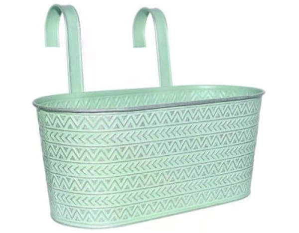 Dameco Übertopf Oval mit 2 Haken GrünGrün, 16x33x14 cm(LxBxH), Hakenhöhe 26 cm / Thema: Pflanzengefässe