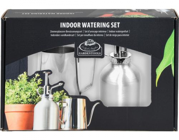 Esschert Design Indoor-Bewässerungsset 2 Stück, Silber / Giesskanne+Pflanzensprüher, 8x8x7.3x17.4 cm / Thema: Giesskannen