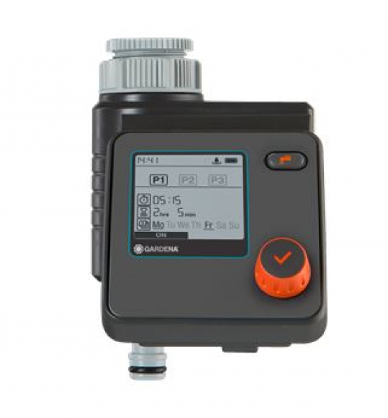 Die GARDENA Bewässerungssteuerung Select entlastet bei der Gartenbewässerung, z.B. beim Betrieb von Regnern, dem GARDENA Sprinklersystem, auch mit dem GARDENA Micro-Drip-System. Der Bewässerungscomputer wird direkt an den Wasserhahn angeschlossen und steuert die Bewässerung zuverlässig zur eingestellten Zeit und Dauer. Damit muss man weder im Alltag noch während des Urlaubs ans Gießen denken, weil alles automatisch nach den eigenen Wünschen läuft. Das Bedienteil lässt sich abnehmen, um es bequem zu programmieren. Auf dem übersichtlichen LCD-Display werden die ausgewählten Einstellungen angezeigt. Das Programmieren ist selbsterklärend und geht ganz leicht. Danach steckt man das Bedienteil wieder an. Hat man einmal die Vorgaben eingestellt, steuert der Computer das Gießen automatisch nach den eigenen Wünschen. Die Funktion "Sofort Bewässern" ermöglicht eine manuelle Bewässerung oder das Befüllen eines Eimers ohne Abschrauben der Bewässerungssteuerung und stoppt automatisch wieder nach vorgegebener Dauer. Außerdem ist die Bewässerungssteuerung Select sensorfähig, ein angeschlossener Sensor (separat erhältlich) misst die Bodenfeuchte und unterbricht den Zeitplan, wenn es zum Gießen zu nass ist. Mit einer 9 V Alkaline Batterie (nicht im Lieferumfang enthalten) funktioniert die Bewässerungssteuerung Select zuverlässig ca. ein Jahr lang.