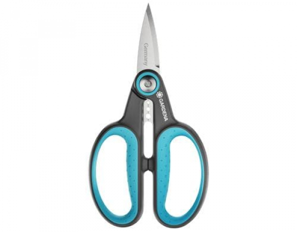 Die neue HerbCut Kräuterschere von GARDENA mit robusten Klingen eignet sich besonders gut zum Schneiden von Kräutern mit holzigen Stielen, wie zum Beispiel Rosmarin, Salbei oder Thymian. Ein cleveres Detail dieser Schere sind die drei unterschiedlich großen Löcher zwischen den beiden Griffen, durch die man die Stängel einfach hindurchzieht, um die Blättchen ganz leicht zu lösen. Legt man z.B. einen Rosmarinstängel in ein passendes Loch und zieht ihn hindurch, fallen sämtliche Blätter ab. So hat man den Kräuterstängel mit nur einer Bewegung entblättert. Nun können die Rosmarinblätter direkt verarbeiten oder zum Trocknen ausgelegt werden. Die HerbCut liegt dank der ErgoTec-Griffe mit Weichkomponenten immer ergonomisch und rutschfest in der Hand. Die Kräuterschere wird nachhaltig in Deutschland hergestellt und für ihre Griffe werden mehr als 70 Prozent recycelter Kunststoff verwendet. Da die HerbCut lebensmittelecht ist, überträgt sie weder Geruch noch Geschmack. Nach dem Ernten kann die Schere in der Spülmaschine gesäubert werden.