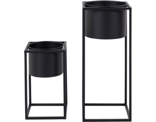 House Nordic Blumentopf Marla 2 Stück, Schwarz / Schwarz, H: 31, 51cm / Thema: Pflanzengefässe