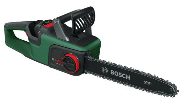 Akku-Kettensäge AdvancedChain 36 V-35-40. Tackle Logging und grosser Schnitt mit einer kraftvollen, kabellosen Kettensäge, Brushless-Motor für leistungsstarkes Sägen. Kontinuierliches Schneiden auch bei anspruchsvollen Aufgaben mit OptiCut-Drehzahlregelung. Leicht und optimiert für kontrollierte, präzise Schnitte, problemlose Montage mit intuitiver, werkzeugloser SDS, Rückschlagsicherung mit QuickStop-Bremssystem. Syneon Technology für optimale Leistung und maximale Laufzeit. Kompatibel mit Bosch 36 V POWER FOR ALLER Akku, 1 x Akku 36 V 2. 0Ah, Ladegerät AL 36 V-20, Kettensägenabdeckung, Kettensägenöl 50 ml, Schnellstartanleitung, 2 x Sägekette, 35 cm, Karton