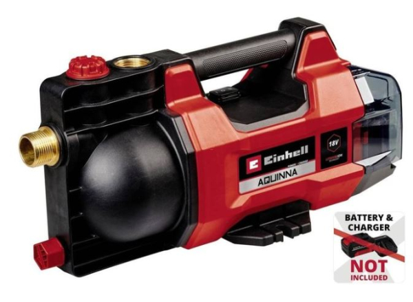 Mit der Einhell Akku-Gartenpumpe AQUINNA 18/28 kann man unabhängig vom Stromnetz Regen-, Brunnen- oder Zisternenwasser im heimischen Garten und Grün benutzen, das spart Geld und schont die Umwelt, denn die AQUINNA Gartenpumpe wird einem 18 Volt Power X-Change Akku betrieben. Die kompakte, schlanke AQUINNA 18/28 eignet sich zum Bewässern und Gießen von Grünanlagen, Gemüsebeeten oder Gärten, zum Betrieb von Rasensprengern, mit Vorfilter zur Wasserentnahme aus Teichen, Bächen, Regentonnen, Regenwasser-Zisternen und Brunnen, oder zur Brauchwasserversorgung. Dabei kann zwischen zwei Leistungsstufen gewählt werden. Volle Power mit maximalem Förderdruck gibt es im BOOST-Modus, im ECO-Modus wird für die maximale Akku-Laufzeit mit weniger Druck gepumpt. Mit einer Förderhöhe von bis zu 25 Metern, einer Ansaughöhe von bis zu 6 Metern und einer Fördermenge von maximal 2.800 Liter pro Stunde überzeugt die AQUINNA Akku-Gartenpumpe auch mit Leistung. Die Pumpe ist mit einer Wassereinfüllschraube und zum Schutz vor Frost mit einer Wasserablassschraube ausgestattet. So kann sie im Winter sicher aufbewahrt werden. Der Thermoschutz schützt den Motor vor Überlastung. Mit ihrem praktischen Tragegriffs ist die Akku-Gartenpumpe schnell an jeden beliebigen Einsatzort gebracht. Zur dauerhaften Fixierung an einem bestimmten Einsatzort ist die Gartenpumpe mit Befestigungslöchern ausgestattet. Die Lieferung erfolgt ohne Akku und ohne Ladegerät. Zum Betrieb der Akku-Gartenpumpe AQUINNA 18/28 ist ein separat erhältlicher 18 Volt-Akku aus der Power X-Change-Reihe erforderlich, wie sie auch in den Einhell Werkzeugen und Gartengeräten benutzt werden.