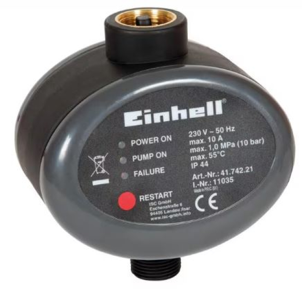 Der Einhell Elektronische Durchflussschalter ist eine ideale Lösung, um Gartenpumpen in einen Hauswasserautomaten zu integrieren. Er schaltet die Pumpen automatisch bei Bedarf an und aus. Der Druckflussregler sorgt für optimale Druckverhältnisse: Wird der Wasserhahn geöffnet, sinkt der Druck in der Leitung und die Pumpe wird automatisch eingeschaltet. Sobald der Wasserhahn geschlossen wird, steigt der Druck und die Pumpe schaltet sich ab. Mit dem Anschluss-Adapter kann das Gerät an verschiedene Pumpentypen angeschlossen werden und verfügt über eine Steckdose sowie 1.45 m lange Netzleitung.