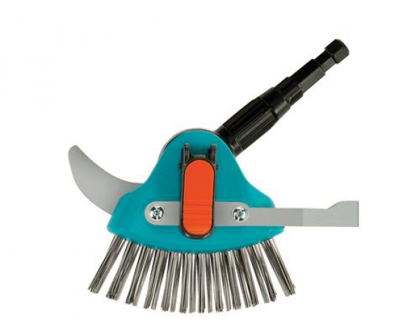 Der GARDENA combisystem 3in1 Fugenreiniger verfügt über ein dünnes Edelstahlmesser für schmale Fugen und über einen dreieckig gebogenen Edelstahl-Bügel für breitere Fugen. Er ist zusätzlich zu dem Edelstahlmesser und dem Edelstahl-Bügel noch mit Metallborsten versehen, die sich ideal zur Entfernung von Moos in Pflasterfugen oder zum Zusammenkehren des entfernten Unkrauts eignen. Der GARDENA combisystem 3in1 Fugenreiniger kann mit jedem combisystem Stiel eingesetzt werden, egal ob für Groß- oder Kleingeräte. So ist auch der Einsatz in aufrechter Körperhaltung möglich. Der Bügel und das Messer lassen sich auswechseln, wenn sie abgenutzt sind.