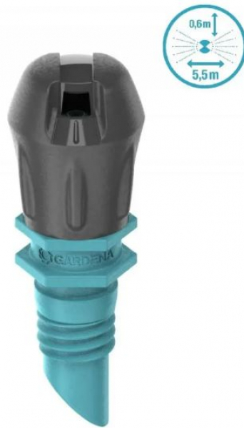 Die GARDENA Streifendüse sorgt in GARDENA Micro-Drip-Systemen für eine flächendeckenden Beregnung von länglichen, schmalen Zonen in zwei Richtungen. Aus der Streifendüse kommt ein feiner Sprühnebel mit einer Reichweite von 2,75 Metern in beide Richtungen, mit einer Sprengbreite von bis zu 60cm. Die Installation an das 13mm-Verlegerohr ist einfach und funktioniert entweder mit Hilfe des Montagewerkzeugs direkt in das Rohr, oder durch die Verwendung des T-Stücks für Sprühdüsen. In wenigen Handgriffen ist die Streifendüse am besten in der Mitte des Beetes angebracht und sofort einsatzbereit. Mit dem separat erhältlichen Verlängerungsrohr für Sprühdüsen (Art.-Nr. 13326-20) kann man die Position der Micro-Drip-System-Düse erhöhen. So können auch höher gewachsene Pflanzen von oben herab beregnet werden. Kombiniert mit dem Absperrventil (Art.-Nr. 13207-20) ist es möglich, den Wasserdurchfluss stufenlos zu regulieren oder einzelne Stränge des Verlegerohres abzusperren. Das sorgt für eine optimale, wassersparende Bewässerung. Dank des intuitiven Designs ist das Sprühbild am Sprühkopf erkennbar, wodurch sich alle GARDENA Sprühdüsen optisch klar voneinander unterscheiden lassen. Das Qualitätsprodukt wird in Deutschland hergestellt.